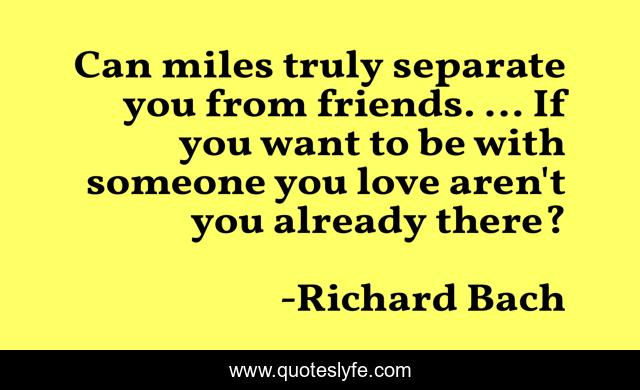 This page presents the quote "Can miles truly separate you from friends. ... If you want to be with someone you love aren't you already there?". Author of this quote is Richard Bach. .