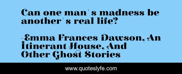 This page presents the quote "Can one man's madness be another's real life?". Author of this quote is Emma Frances Dawson, An Itinerant House, And Other Ghost Stories. This quote is about life, madness,.