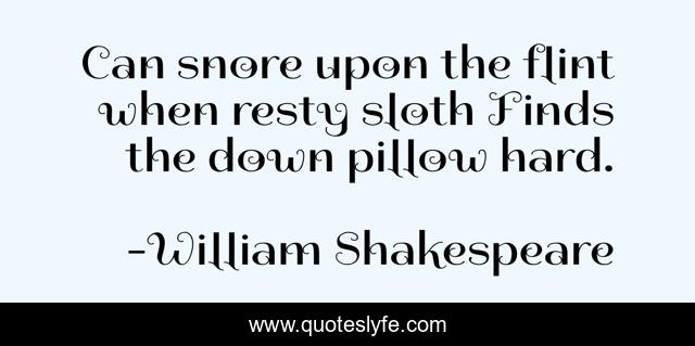 This page presents the quote "Can snore upon the flint when resty sloth Finds the down pillow hard.". Author of this quote is William Shakespeare. .