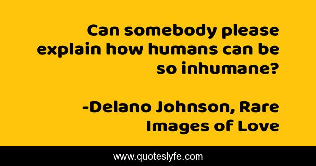This page presents the quote "Can somebody please explain how humans can be so inhumane?". Author of this quote is Delano Johnson, Rare Images of Love. This quote is about poetry, human,.