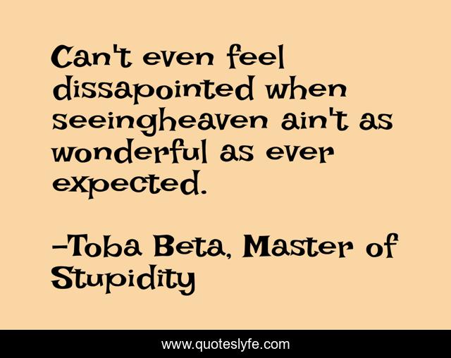 "Toba Beta, Master of Stupidity Quotes." Quoteslyfe.com, 2025. Mon. 08 Dec. 2025. <https://www.quoteslyfe.com/quote/Can-t-even-feel-dissapointed-when-seeingheaven-183414>.