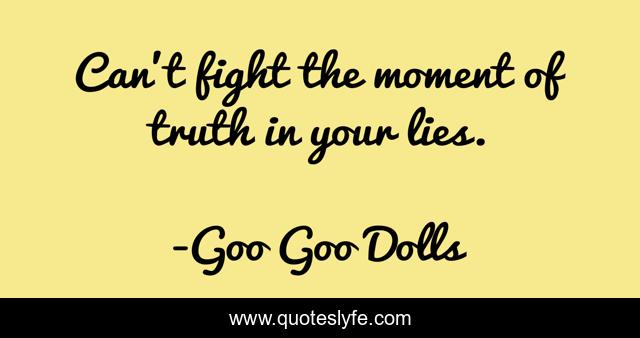 This page presents the quote "Can't fight the moment of truth in your lies.". Author of this quote is Goo Goo Dolls. This quote is about lyrics, songs,.