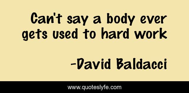 This page presents the quote "Can't say a body ever gets used to hard work". Author of this quote is David Baldacci. This quote is about life, work,.