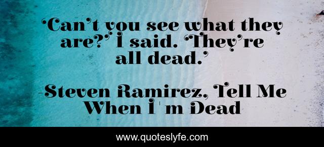 This page presents the quote "‘Can’t you see what they are?’ I said. ‘They’re all dead.’". Author of this quote is Steven Ramirez, Tell Me When I'm Dead. This quote is about drunk, novel, dead, zombie-thriller, soldiers, paranormal-thriller, horde, na, hordes,.