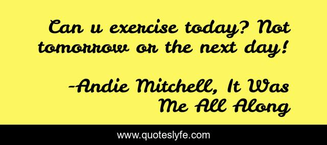 "Andie Mitchell, It Was Me All Along Quotes." Quoteslyfe.com, 2025. Fri. 05 Dec. 2025. <https://www.quoteslyfe.com/quote/Can-u-exercise-today-Not-tomorrow-or-258273>.