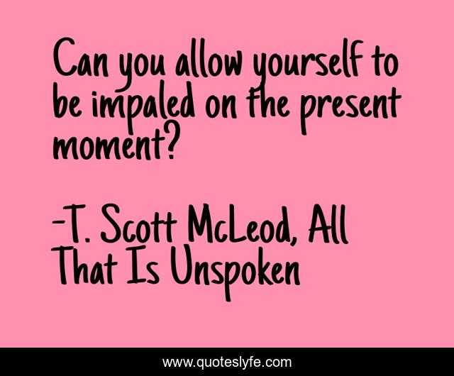 "T. Scott McLeod, All That Is Unspoken Quotes." Quoteslyfe.com, 2025. Sat. 06 Dec. 2025. <https://www.quoteslyfe.com/quote/Can-you-allow-yourself-to-be-impaled-118177>.