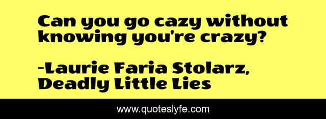 This page presents the quote "Can you go cazy without knowing you're crazy?". Author of this quote is Laurie Faria Stolarz, Deadly Little Lies. This quote is about thinking, crazy, challenging,.
