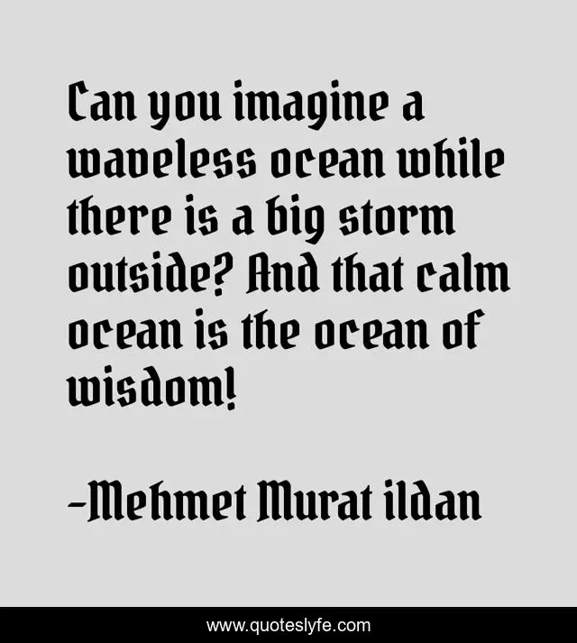 This page presents the quote "Can you imagine a waveless ocean while there is a big storm outside? And that calm ocean is the ocean of wisdom!". Author of this quote is Mehmet Murat ildan. .