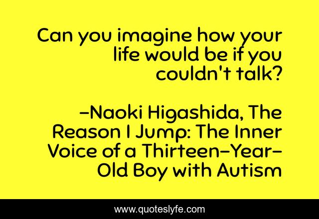 "Naoki Higashida, The Reason I Jump: The Inner Voice of a Thirteen-Year-Old Boy with Autism Quotes." Quoteslyfe.com, 2025. Fri. 05 Dec. 2025. <https://www.quoteslyfe.com/quote/Can-you-imagine-how-your-life-would-100043>.