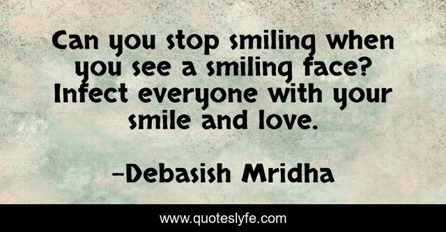 This page presents the quote "Can you stop smiling when you see a smiling face? Infect everyone with your smile and love.". Author of this quote is Debasish Mridha. This quote is about power-of-a-smile, philosophy, smile-and-love, debasish-mridha, quotes, debasish-mridha-md, inspirational, smile, enthusiasm,.
