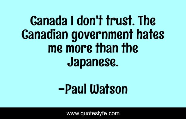 This page presents the quote "Canada I don't trust. The Canadian government hates me more than the Japanese.". Author of this quote is Paul Watson. This quote is about me, canada, government,.