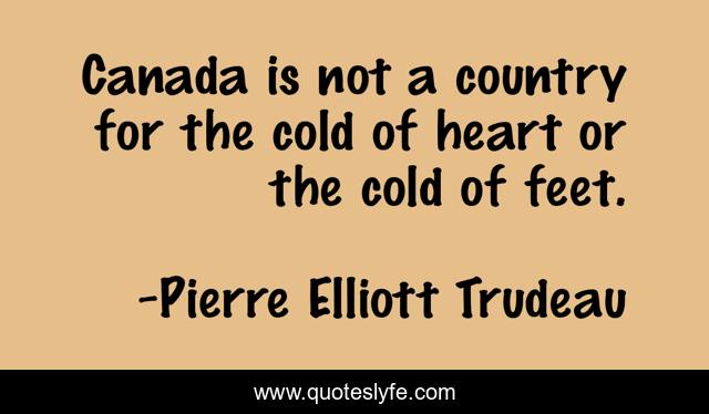 This page presents the quote "Canada is not a country for the cold of heart or the cold of feet.". Author of this quote is Pierre Elliott Trudeau. This quote is about canada, canadians,.