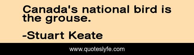This page presents the quote "Canada's national bird is the grouse.". Author of this quote is Stuart Keate. This quote is about canada, canadians,.