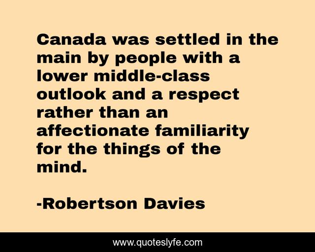 This page presents the quote "Canada was settled in the main by people with a lower middle-class outlook and a respect rather than an affectionate familiarity for the things of the mind.". Author of this quote is Robertson Davies. This quote is about canada, canadians,.