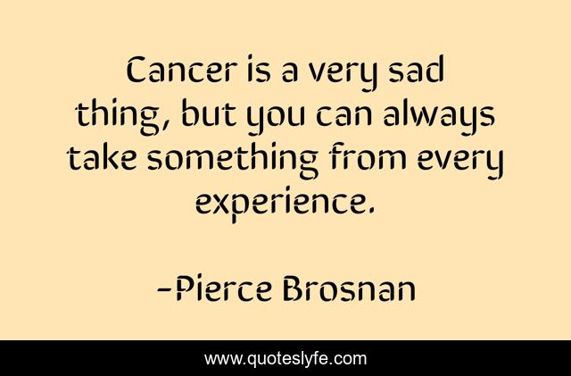 This page presents the quote "Cancer is a very sad thing, but you can always take something from every experience.". Author of this quote is Pierce Brosnan. This quote is about experience, cancer,.