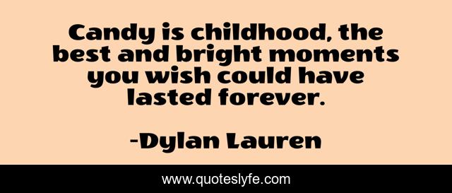 This page presents the quote "Candy is childhood, the best and bright moments you wish could have lasted forever.". Author of this quote is Dylan Lauren. This quote is about moments, childhood, candy,.