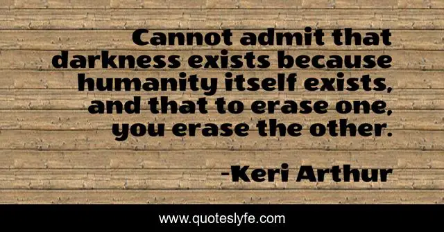This page presents the quote "Cannot admit that darkness exists because humanity itself exists, and that to erase one, you erase the other.". Author of this quote is Keri Arthur. This quote is about darkness, paranormal-romance,.