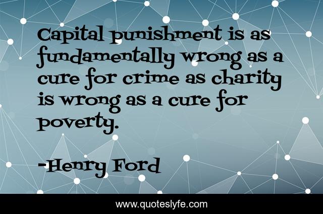 This page presents the quote "Capital punishment is as fundamentally wrong as a cure for crime as charity is wrong as a cure for poverty.". Author of this quote is Henry Ford. This quote is about punishment, crime,.