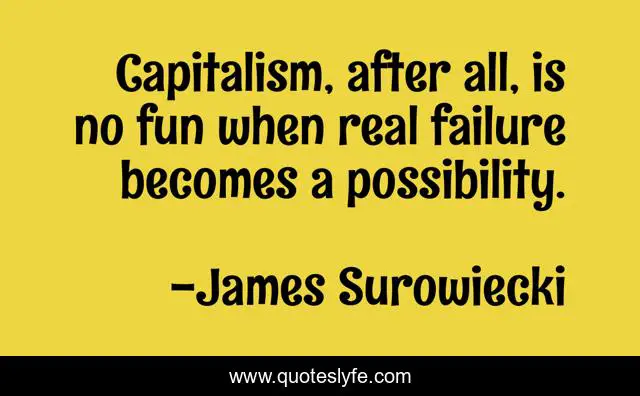 This page presents the quote "Capitalism, after all, is no fun when real failure becomes a possibility.". Author of this quote is James Surowiecki. This quote is about fun, real, capitalism,.