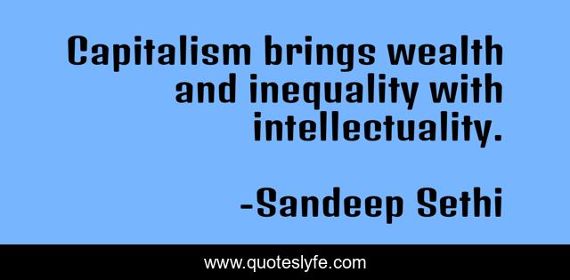 This page presents the quote "Capitalism brings wealth and inequality with intellectuality.". Author of this quote is Sandeep Sethi. This quote is about wealth, intellectual, capitalism,.