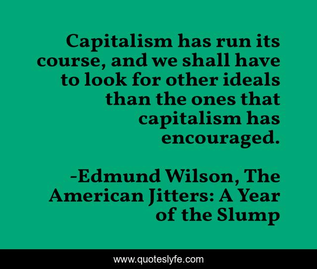 This page presents the quote "Capitalism has run its course, and we shall have to look for other ideals than the ones that capitalism has encouraged.". Author of this quote is Edmund Wilson, The American Jitters: A Year of the Slump. This quote is about socialism, new-ideas, change, capitalism,.
