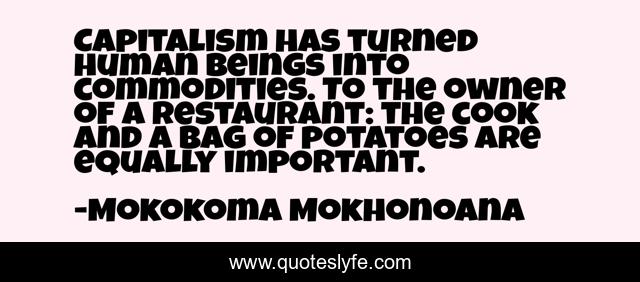 "Mokokoma Mokhonoana Quotes." Quoteslyfe.com, 2025. Fri. 05 Dec. 2025. <https://www.quoteslyfe.com/quote/Capitalism-has-turned-human-beings-into-commodities-204935>.