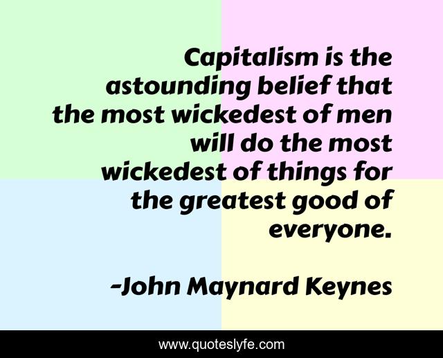 This page presents the quote "Capitalism is the astounding belief that the most wickedest of men will do the most wickedest of things for the greatest good of everyone.". Author of this quote is John Maynard Keynes. .