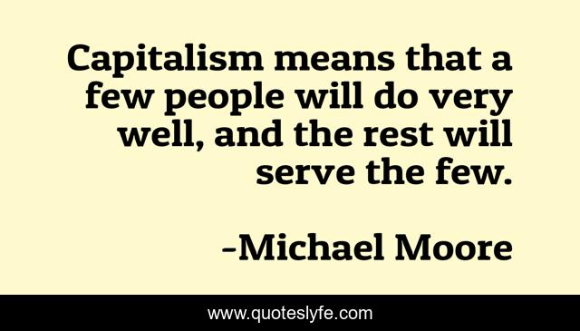 This page presents the quote "Capitalism means that a few people will do very well, and the rest will serve the few.". Author of this quote is Michael Moore. .