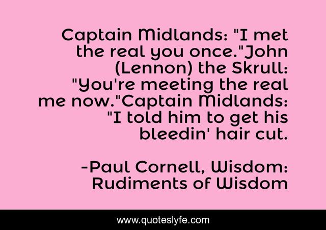 "Paul Cornell, Wisdom: Rudiments of Wisdom Quotes." Quoteslyfe.com, 2025. Sun. 07 Dec. 2025. <https://www.quoteslyfe.com/quote/Captain-Midlands-I-met-the-real-you-55905>.