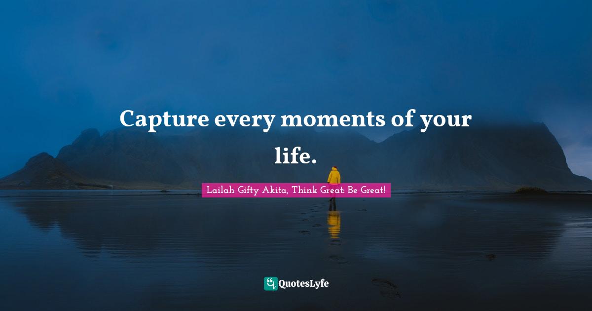 "Lailah Gifty Akita, Think Great: Be Great! Quotes." Quoteslyfe.com, 2025. Wed. 24 Dec. 2025. <https://www.quoteslyfe.com/quote/Capture-every-moments-of-your-life-116136>.