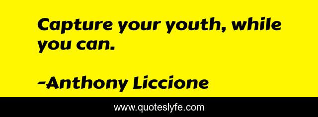 "Anthony Liccione Quotes." Quoteslyfe.com, 2025. Sun. 07 Dec. 2025. <https://www.quoteslyfe.com/quote/Capture-your-youth-while-you-can-151523>.