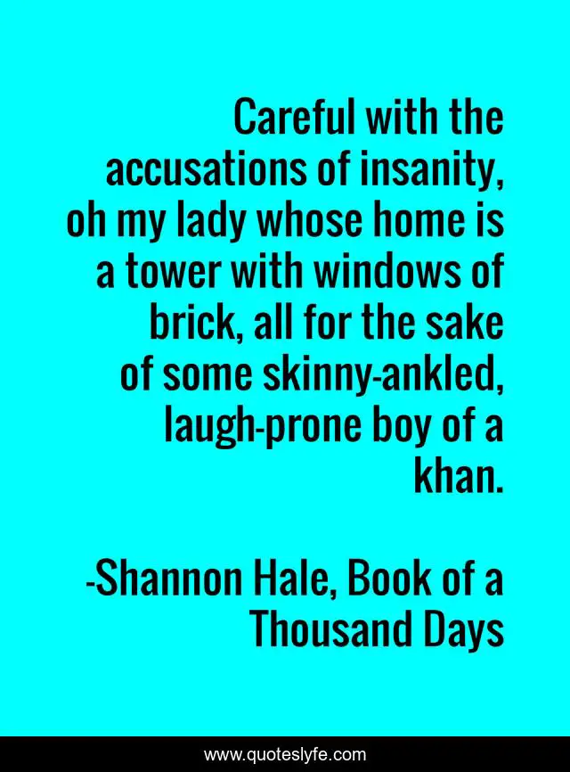 "Shannon Hale, Book of a Thousand Days Quotes." Quoteslyfe.com, 2025. Mon. 08 Dec. 2025. <https://www.quoteslyfe.com/quote/Careful-with-the-accusations-of-insanity-oh-40489>.