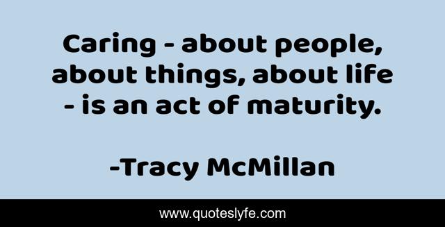 This page presents the quote "Caring - about people, about things, about life - is an act of maturity.". Author of this quote is Tracy McMillan. This quote is about caring, maturity, people,.