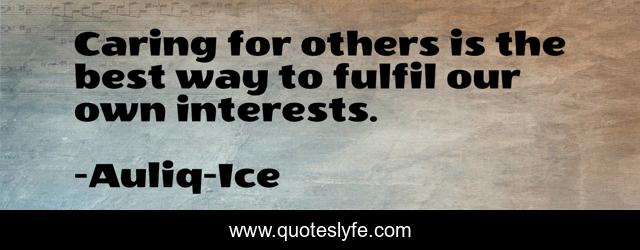 This page presents the quote "Caring for others is the best way to fulfil our own interests.". Author of this quote is Auliq-Ice. This quote is about love, compassion, philanthropy, unity, helping-others, friendship, humanity, affection, charity,.