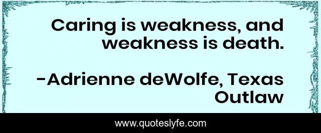 "Adrienne deWolfe, Texas Outlaw Quotes." Quoteslyfe.com, 2025. Fri. 05 Dec. 2025. <https://www.quoteslyfe.com/quote/Caring-is-weakness-and-weakness-is-death-245025>.