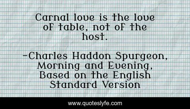 "Charles Haddon Spurgeon, Morning and Evening, Based on the English Standard Version Quotes." Quoteslyfe.com, 2025. Tue. 09 Dec. 2025. <https://www.quoteslyfe.com/quote/Carnal-love-is-the-love-of-table-205950>.