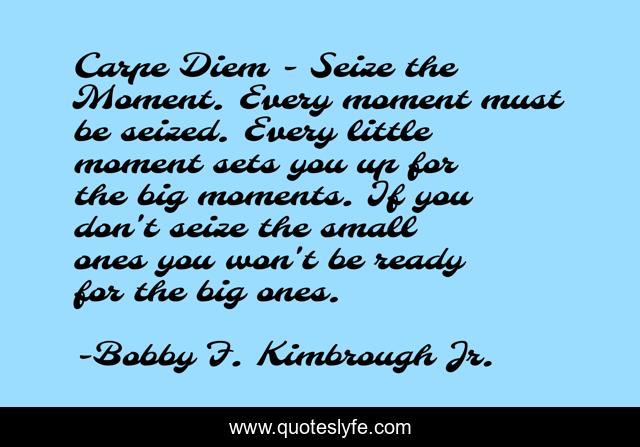 "Bobby F. Kimbrough Jr. Quotes." Quoteslyfe.com, 2025. Fri. 05 Dec. 2025. <https://www.quoteslyfe.com/quote/Carpe-Diem-Seize-the-Moment-Every-moment-47585>.