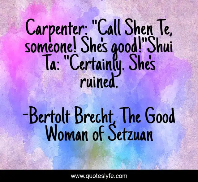 "Bertolt Brecht, The Good Woman of Setzuan Quotes." Quoteslyfe.com, 2025. Fri. 05 Dec. 2025. <https://www.quoteslyfe.com/quote/Carpenter-Call-Shen-Te-someone-She-s-226247>.
