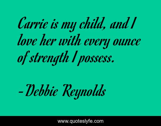 This page presents the quote "Carrie is my child, and I love her with every ounce of strength I possess.". Author of this quote is Debbie Reynolds. This quote is about love, her, affection, child,.