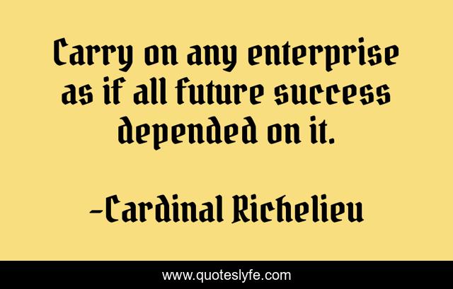 This page presents the quote "Carry on any enterprise as if all future success depended on it.". Author of this quote is Cardinal Richelieu. This quote is about carry, future,.