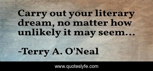 This page presents the quote "Carry out your literary dream, no matter how unlikely it may seem...". Author of this quote is Terry A. O'Neal. This quote is about quote, poetry, o-neal, terry,.