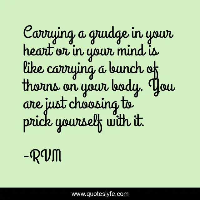 This page presents the quote "Carrying a grudge in your heart or in your mind is like carrying a bunch of thorns on your body. You are just choosing to prick yourself with it.". Author of this quote is RVM. This quote is about motivation, inspiration,.