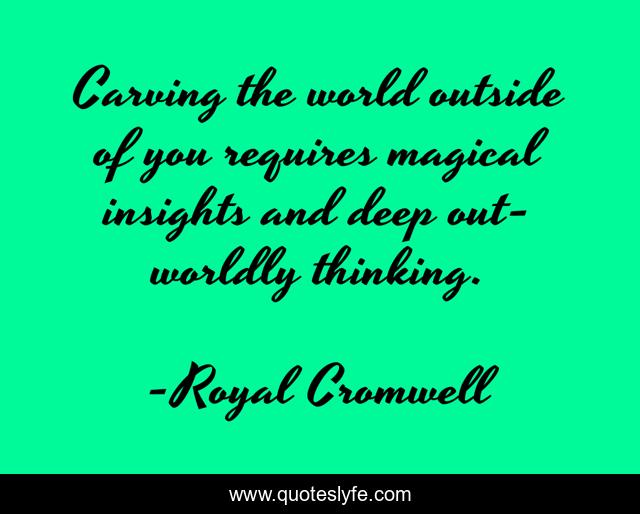 This page presents the quote "Carving the world outside of you requires magical insights and deep out-worldly thinking.". Author of this quote is Royal Cromwell. This quote is about thinking, world,.