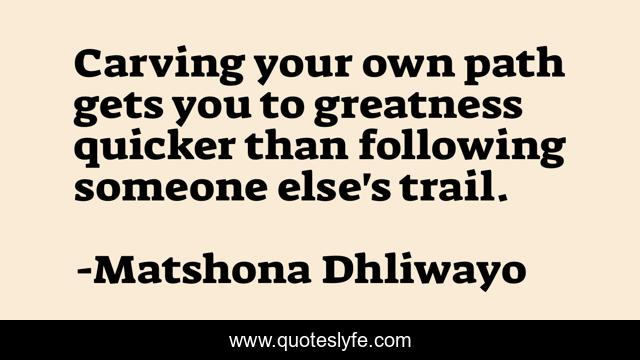 "Matshona Dhliwayo Quotes." Quoteslyfe.com, 2025. Fri. 05 Dec. 2025. <https://www.quoteslyfe.com/quote/Carving-your-own-path-gets-you-to-83607>.