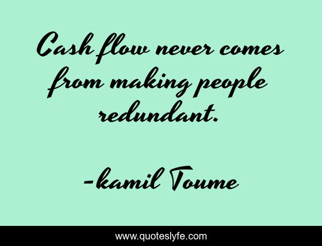This page presents the quote "Cash flow never comes from making people redundant.". Author of this quote is kamil Toume. This quote is about layoffs, leadership,.
