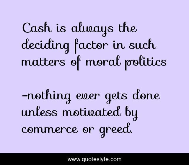 "nothing ever gets done unless motivated by commerce or greed. Quotes." Quoteslyfe.com, 2025. Sat. 06 Dec. 2025. <https://www.quoteslyfe.com/quote/Cash-is-always-the-deciding-factor-in-204809>.