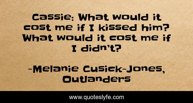 This page presents the quote "Cassie: What would it cost me if I kissed him? What would it cost me if I didn’t?". Author of this quote is Melanie Cusick-Jones, Outlanders. This quote is about decisions, love, affection,.