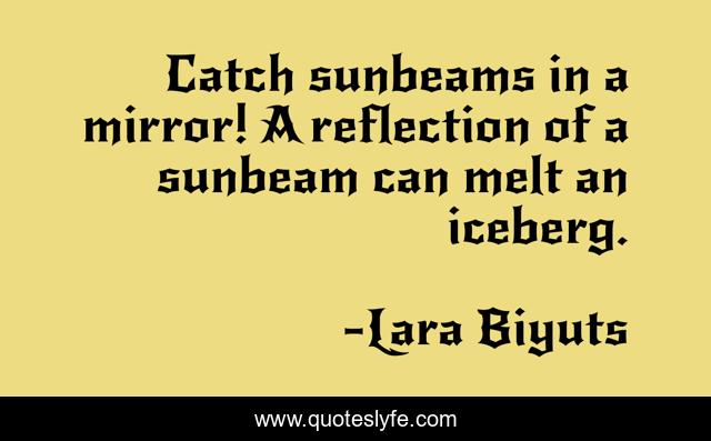 This page presents the quote "Catch sunbeams in a mirror! A reflection of a sunbeam can melt an iceberg.". Author of this quote is Lara Biyuts. This quote is about sun, life, positive-thinking,.
