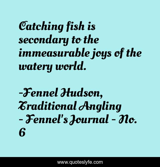 "Fennel Hudson, Traditional Angling - Fennel's Journal - No. 6 Quotes." Quoteslyfe.com, 2025. Fri. 05 Dec. 2025. <https://www.quoteslyfe.com/quote/Catching-fish-is-secondary-to-the-immeasurable-72564>.