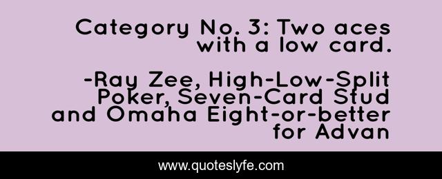 "Ray Zee, High-Low-Split Poker, Seven-Card Stud and Omaha Eight-or-better for Advan Quotes." Quoteslyfe.com, 2025. Sat. 06 Dec. 2025. <https://www.quoteslyfe.com/quote/Category-No-3-Two-aces-with-a-218884>.